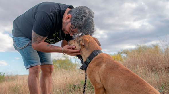 Helena, nacida a finales del 2023, esta esterilizada, es una perra timida con buenas relaciones con los perros pues convive con multiples de ellos.